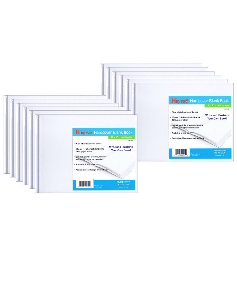 Write and illustrate your own book, document a special event or create a journal! Hardcover blank books are perfect for budding authors and illustrators. Bright white paper is ideal for crayons, markers, pencils and other art materials. Plain, matte cover is ready for illustrations and personalization. Blank books are great to keep in the classroom for quick and fun activities! They are also great for using as a drawing book because the hard cover will keep the pictures safe from getting bent! Book contains 28 pages (14 two-sided sheets). Measures 8" wide x 6" high. Pack of 12 books.