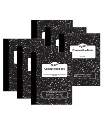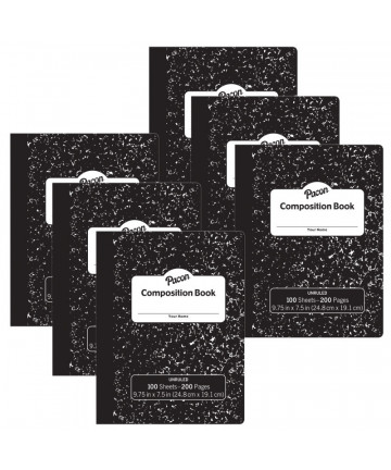 The Pacon® Junior Composition Book is a 5" x 7-1/2" composition book that is great for students to use for daily grammar and vocabulary work, practicing math word problems or as a class journal. The smaller size helps students fill the entire page for each lesson - no more wasted or empty space on full size pages! Comes with a hardcover for added durability in a Black marble design. Wide ruled. Includes 100 sheets.