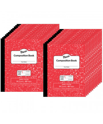 - Wide ruled format: the bright white paper has blue handwriting lines with a red margin divider to allow for neat writing