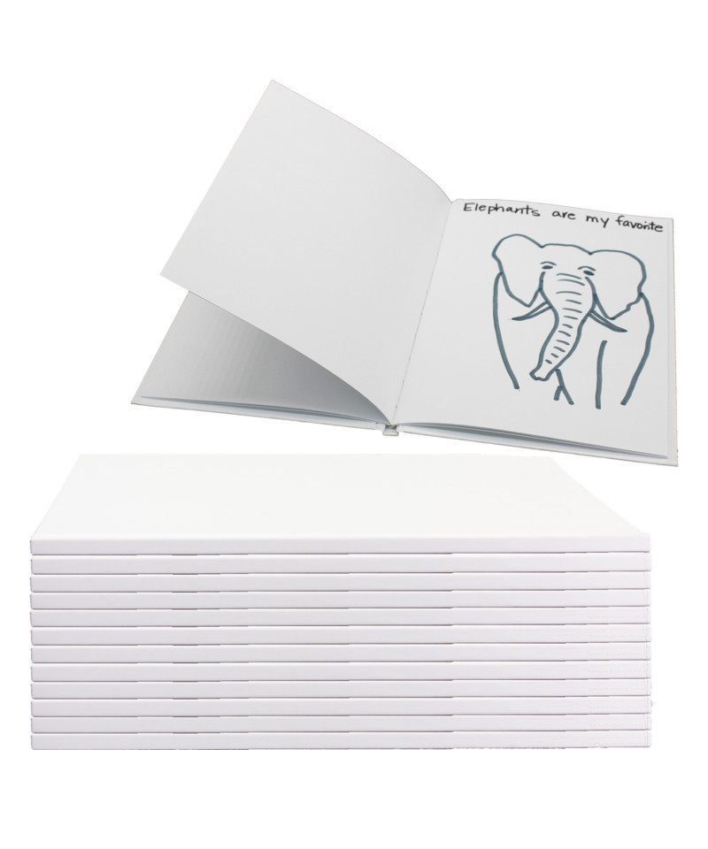Hardcover Blank Books are great for easy and fun activities. Create your own book, draw pictures, document an event, or even use it as a journal. This is a portrait styled blank book and it comes in a set of 12. These books are in portrait format measuring 8.5" x 11". 14 Sheets/28 Pages on 80# bright white paper.