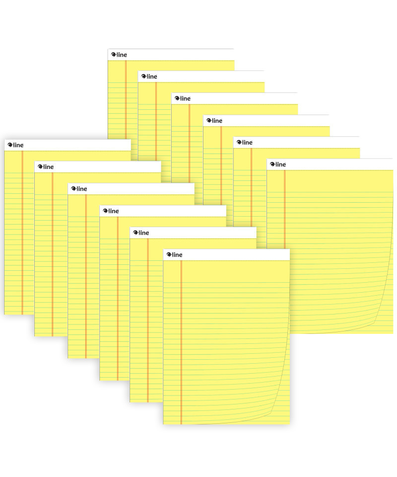 Always be prepared to jot down important information with Legal Pads. These 8-1/2" x 11-3/4" wide ruled note pads provide enough space to record your thoughts. Legal Pads are perfect for students, teachers, professionals, and anyone that wants to document their ideas and information. The pages can be used for class notes, memos, journaling, sketching, to-do lists, or just plain doodling. With 50 pages per pad, you don't have to worry about running out of paper. Paper is lined with left side margin and title space to allow for neat writing. Wide ruled format. Pads measure 8-1/2" x 11-3/4" in size. Yellow paper has blue handwriting lines with a red margin divider and white top binding. Perforated top edge allows for easy removal of pages. Thick cardboard backing provides extra support when writing. Each pad is individually shrink wrapped for added protection. 50 pages per pad. Sold as a pack of 12 legal pads.
