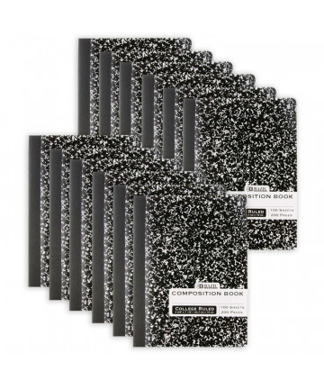 Black marble composition notebooks come with 100 sheets of wide-ruled paper, ready for any assignment and convenient for on-the-go use! Overall Size: 9.75" x 7.5". The inside front cover features a class schedule to keep you on track, while the inside back cover has multiplication tables, conversion tables, and grammar rules for quick reference. The wide-ruled format promotes neat, even lines of legible writing, and its double-sided feature provides plenty of note-taking space. It adheres to the standard elementary/grade school rule for larger handwriting. Durable covers with secure sewn binding and stitched-in sheets ensure longevity. The sewn binding keeps notes securely held together and creates a smooth edge that won't catch on your clothing or backpack. It's great for students to take this notebook to their schools, colleges, and universities. A perfect product for writing all important notes, assignments, information, and other similar tasks.