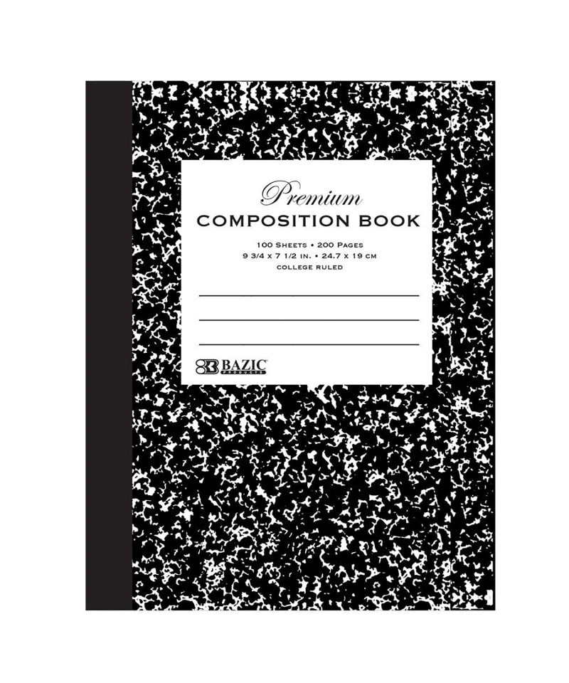 - SIMPLY NOTETAKING. Black marble composition notebooks come with 100 sheets of college-ruled paper. Ready for any assignment and take it with you on the go! Overall Size: 9.75" x 7.5".