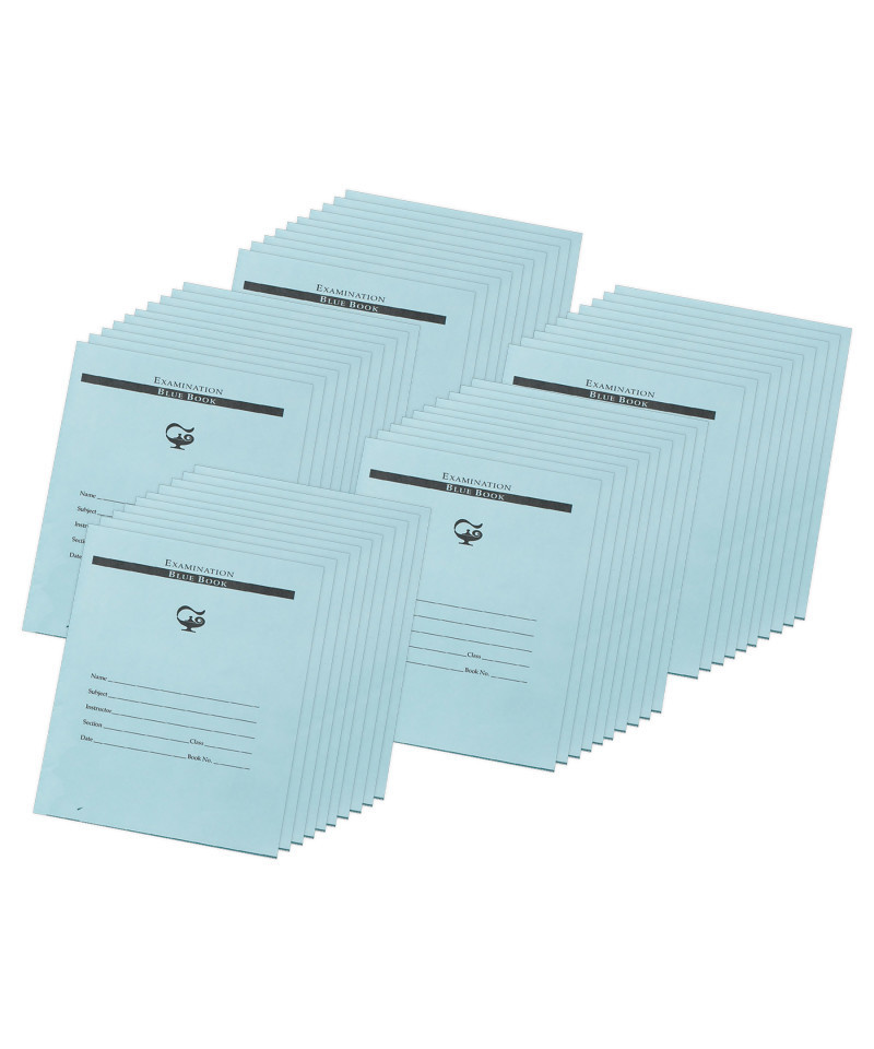 Prepare for exams and essay writing with these traditional Examination Blue Books, crafted for reliability and performance. Each book features 12 pages (6 sheets) of white sulphite bond paper that’s 3/8" ruled, complete with a red margin on both sides to help maintain clean, organized writing. Sized at a convenient 7" x 8-1/2", these books offer just the right amount of space for in-class essays, quizzes, and tests. Made from recyclable materials, they are an eco-conscious choice for schools, universities, and testing centers. Sold as a pack of 50 blue books, ideal for bulk classroom or institutional use.