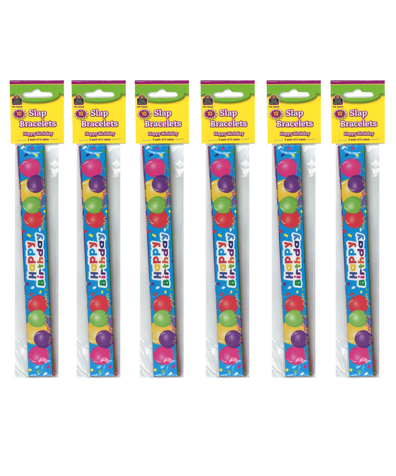 Slap bracelets fit most wrist sizes and are a fun way to reward good behavior or build awareness for special events. Measures 9.5" x 1". 2 each of 5 colors. 10 pieces per pack. Sold as 6 packs for a total of 6 bracelets.