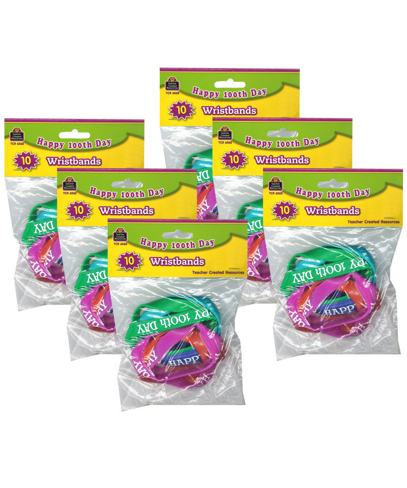 Teacher Created Resources® Happy 100th Day Wristband Pack, 10 Per Pack, 6 Packs