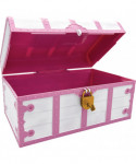Fill this durable plastic treasure chest with toys, prizes, stickers, and more! The chest is pink and white with an easy-open lid attached by built-in hinges. Great for pirate-themed parties, as a gift or storage box, or for a rewards chest in your classroom! Measures 13" L x 9-1/2" W x 10-1/4" H.