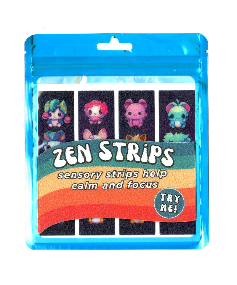 - Discreet Design: Zen Strips offer a compact, lightweight, and non-invasive method to improve focus and self-regulate emotions by providing tactile sensations while fidgeting.