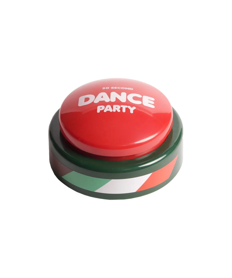 The 30 Second Dance Party Button Holiday Edition is the perfect way to add a festive burst of joy to any holiday gathering or celebration. With a single press, it plays 30 seconds of cheerful, holiday-themed music, transforming everyday moments into spontaneous celebrations. Whether in the classroom, office, or at home, this button features five jolly tracks that encourage movement, laughter, and a break from the holiday hustle. Its glowing BloGlo technology enhances the fun with a warm, festive glow, making each dance party even more magical. Ideal for lifting spirits, spreading cheer, and creating memorable holiday moments, the Holiday Edition is a must-have for adding seasonal fun to any setting.