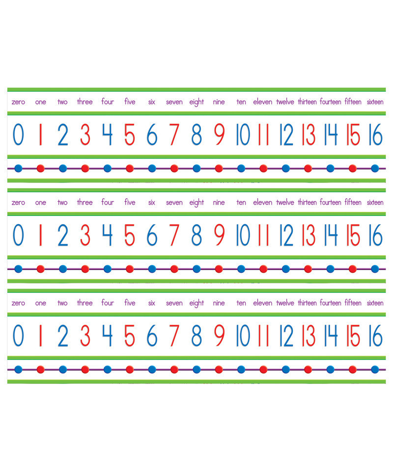 Use this 16-foot-long number line to teach counting, skip counting, odd and even numbers, number words, and more! Each bulletin board set includes 1 Number Line 0-100, 16 feet long. Sold as a pack of 3 identical sets.