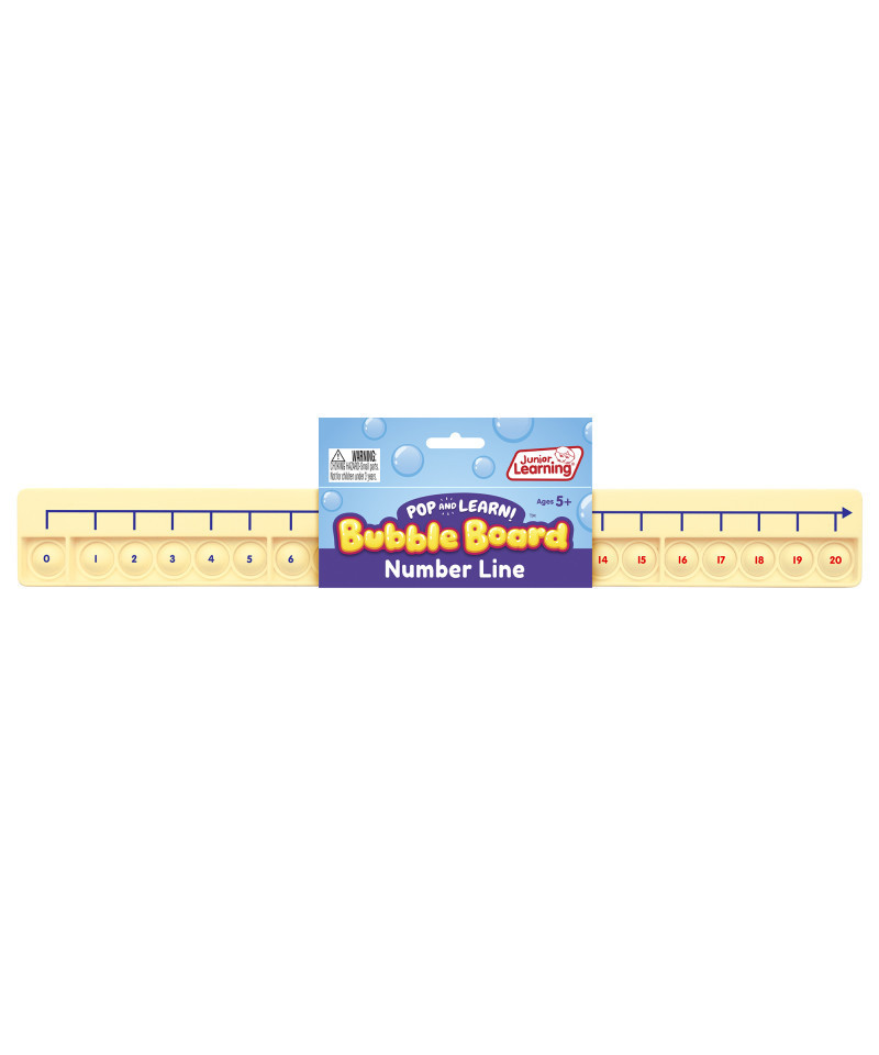 Pop bubbles on the number line to learn simple addition, subtraction, counting, skip counting and number properties with this durable "pop and learn" bubble board. The double-sided board features a number line with 0-20 printed on the front and blank bubbles on the back.