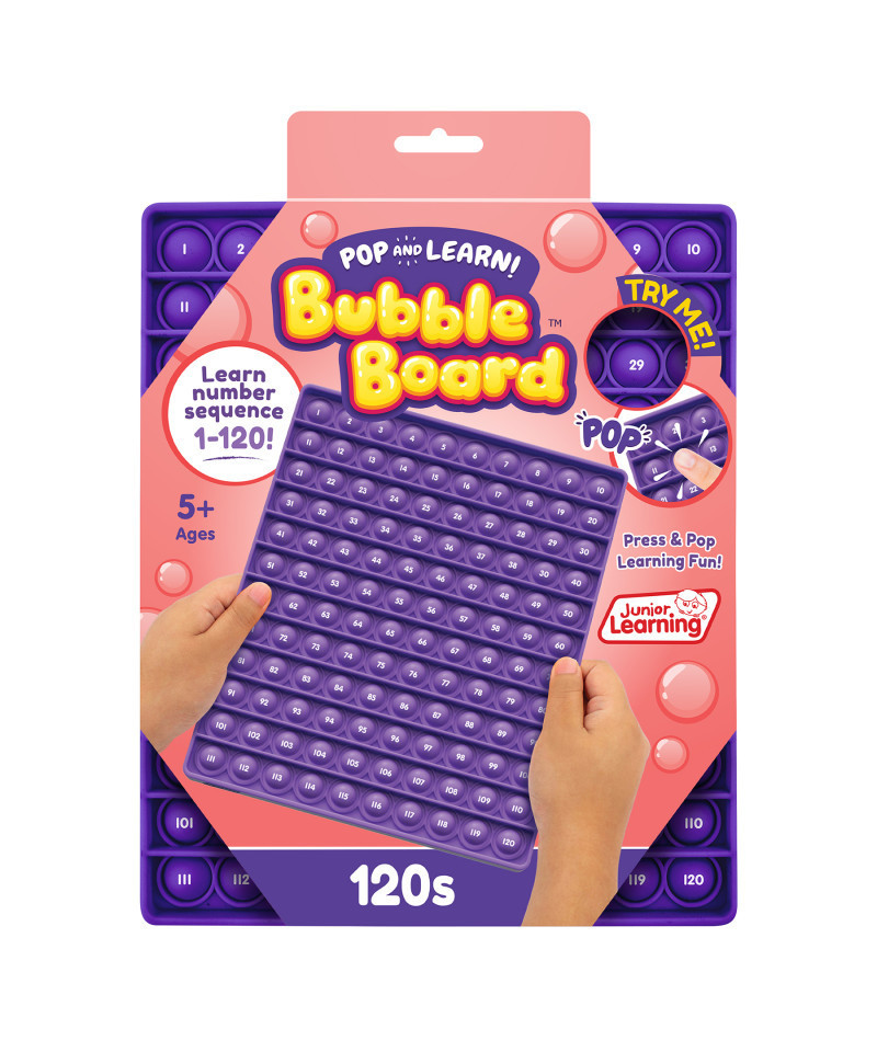 Discover place value, skip counting, addition, subtraction and number properties with this durable "pop and learn" 120s board. The double-sided board features numbers printed in ascending order on the front and descending order on the back. Measures 8"L x 9.5"H.
