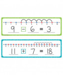 Learn to identify and understand number values 0–20. Count, add, subtract, and more with writable space to practice equations. Double-sided write-on/wipe-off surface. Measures 11-1/2" x 3-1/2". 30 pieces per pack.