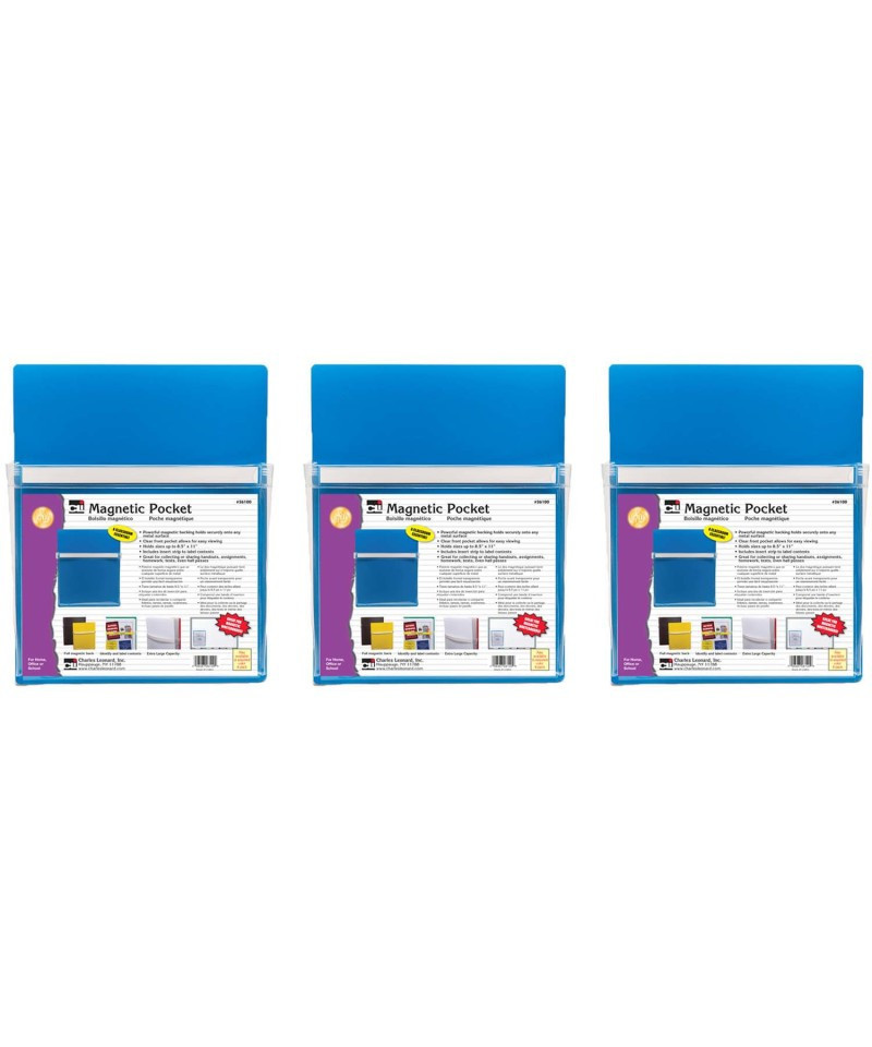 These magnetic pockets are so versatile and strong that it's almost impossible to name all the ways they can be used! Each pocket measures 9-1/2" wide and 11-3/4" high and features a powerful magnetic surface throughout the entire back of the pocket. The magnetic backing will hold securely onto any metal surface. The pockets also feature a large clear pocket in the front which can hold up to 2 lbs. worth of material! The front pocket also has an insert strip to label contents. Sold as a pack of 3 magnetic pockets.
