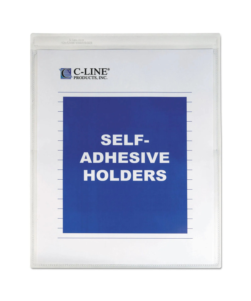Self-adhesive PVC-free poly holders stick wherever they are needed. Clear, heavyweight holders with non-rip seams attach to any dry, clean, flat surface. Ideal for convenient storage of instructions or service records on office equipment. Unlimited uses for these adaptable products. Measures 9" x 12", Box of 50.