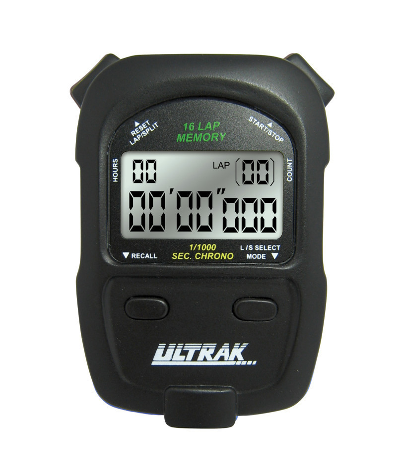 The ULTRAK 460 is a reliable and easy-to-use stopwatch built for the needs of educators and physical education programs. It measures up to 100 hours with 1/1000 second resolution, making it perfect for everything from sprints to endurance testing. With 16 lap or split times stored in memory, teachers can easily review student performance during or after activities. The stopwatch allows for split-taking and memory recall during operation, ideal for fast-paced PE classes. Its extra-large display ensures clear visibility for both instructors and students in any setting. With a lap counter up to 99 and included lanyard, the ULTRAK 460 is a practical, durable tool for daily school use.