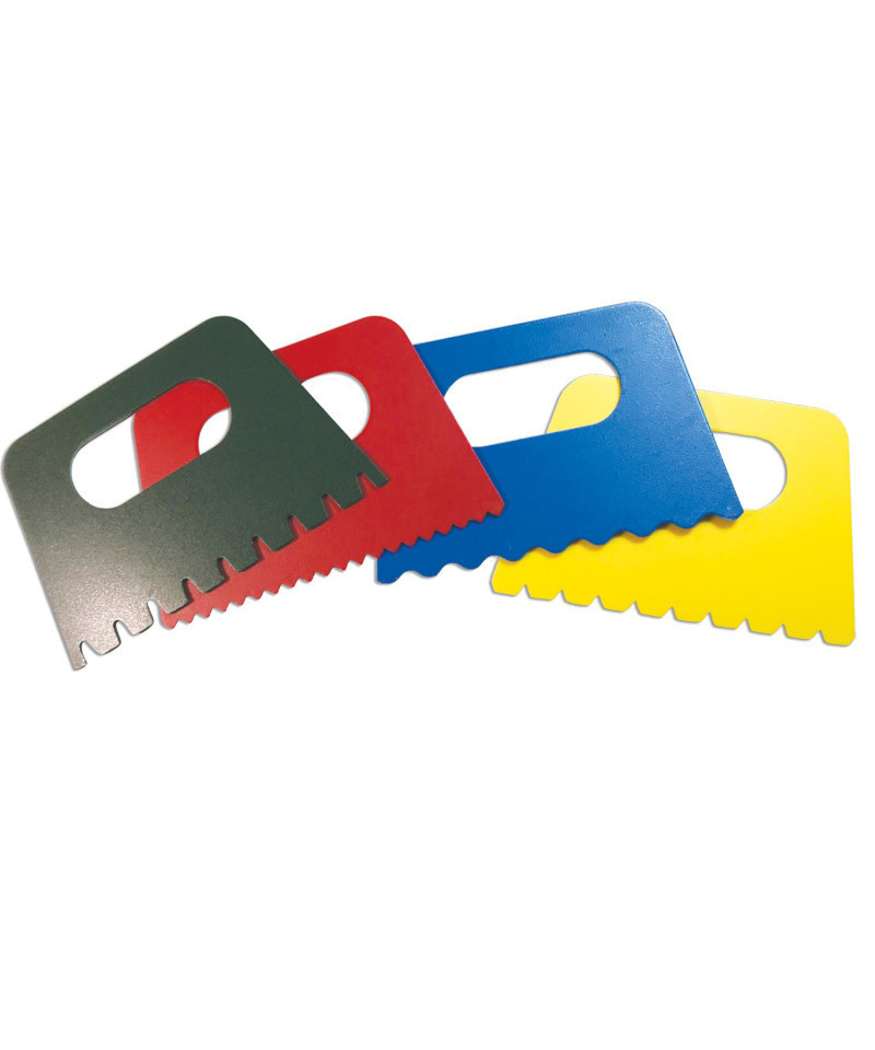Make wild designs in wet paint with 7 different scraper styles. Paint and texture go hand in hand with this must-have paint tool. Simply drag the scrapers through paint to create lines and patterns. The teeth of 4 of the scrapers are spaced at varying widths. The 3 varying-sized flat scrapers help to ensure smooth textures. Includes 7 scrapers in assorted styles and colors), 3" x 5" (8 x 13 cm).