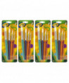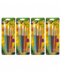 Four round, all-purpose arts and crafts paintbrushes for a variety of broad stokes and fine details. The brushes feature brushed silver ferrules and wooden handles that are a good fit for kid-size hands. Each handle has its own vibrant color. Features white Taklon bristles to show paint's true color. Soft and shed-resistant for smooth strokes. Each pack includes 4 brushes. Sold as 4 packs for a total of 16 brushes.