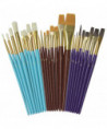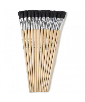 Multi-media brush set is great for learning different techniques. Contains 24 total brushes consisting of three different types of brush hairs, and four different brush shapes. Can be used with watercolors, oils, temperas and acrylics, as well as with decorative painting. Set consists of eight golden nylon bristle brushes (five flats, one angular, and two tapered), eight natural White bristle brushes (four rounds and four flats) and eight camel hair bristle brushes (three tapered, two flats and three brights).