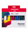 Amsterdam Standard Series Acrylic offers you the broadest range of remarkably vibrant acrylic colors. This versatile paint is easy to work with and offers a smooth application. Use the paint straight from the tube or thinned with a little bit of water or one of our acrylic mediums. Includes six 120 ml (4 oz) tubes of Titanium White, Primary Yellow, Primary Magenta, Primary Cyan, Phthalo Green, and Oxide Black.