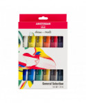 Amsterdam Standard Series Acrylic offers you the broadest range of remarkably vibrant acrylic colors. This versatile paint is easy to work with and offers a smooth application. Use the paint straight from the tube or thinned with a little bit of water or one of our acrylic mediums. Set contains 12, 20 ml tubes including Azo Yellow Medium, Burnt Umber, Oxide Black, Permanent Blue Violet, Permanent Green Deep, Primary Cyan, Primary Yellow, Pyrrole Red, Titanium White, Ultramarine, Vermilion, and Yellow Ochre.