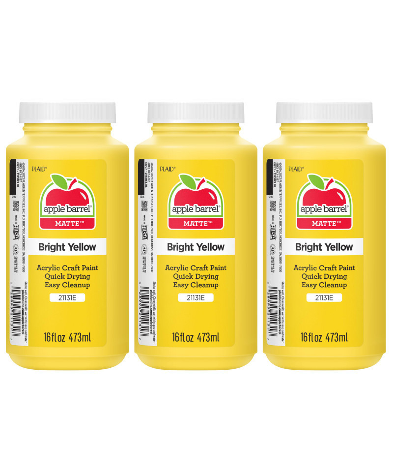 Apple Barrel Acrylic Paint Matte, 16oz., Bright Yellow, Pack of 3