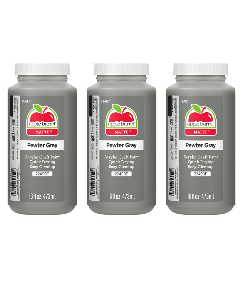 Apple Barrel Acrylic Paint Matte, 16oz., Pewter Gray, Pack of 3
