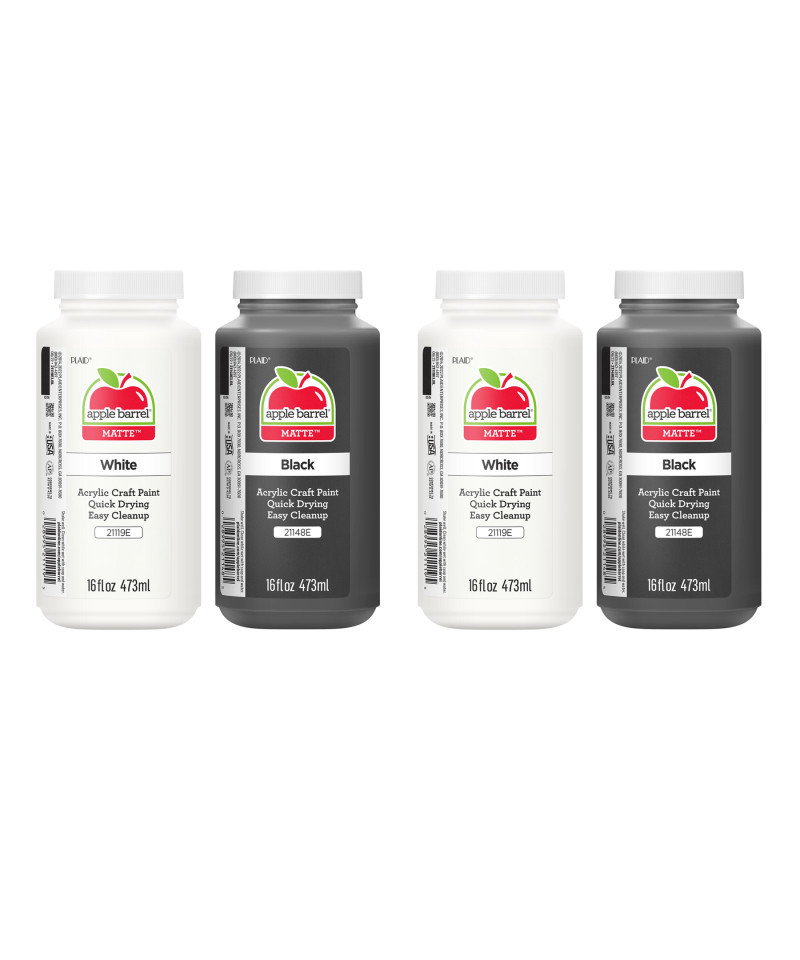 - CONVENIENT SIZE - Sold as 2 sets, each Apple Barrel Acrylic Paint Set comes with two 16 oz paints great for basecoating, stenciling, and so much more. The colors included in this set are: Apple Barrel Black and White