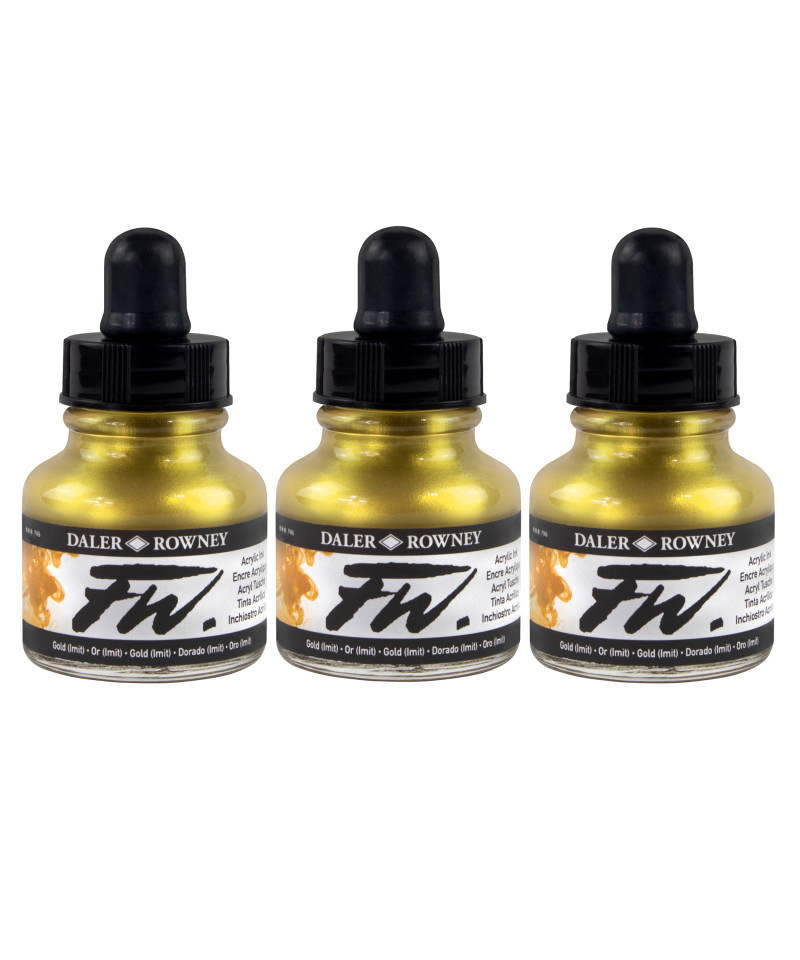 Daler-Rowney FW Acrylic Ink, Gold Imitation, 29.5ml, Pack of 3