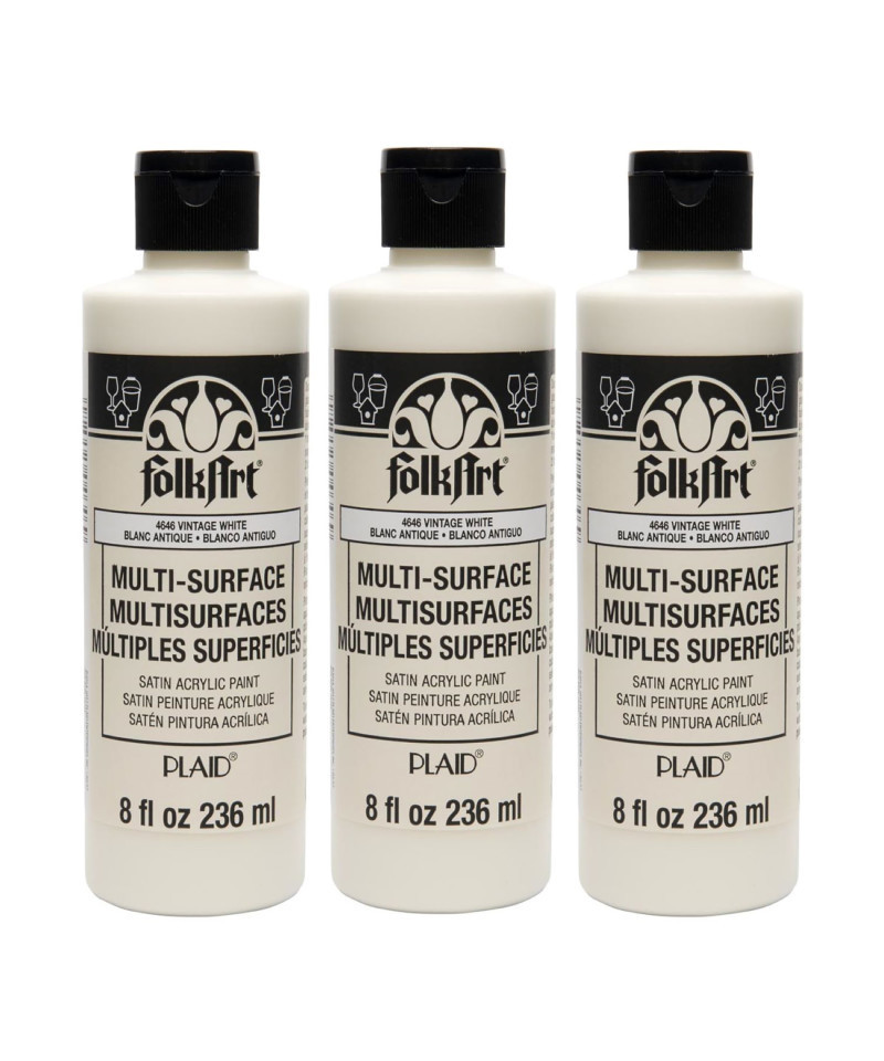 FolkArt Acrylic Paint Multi-Surface Satin, 8oz., Vintage White, Pack of 3