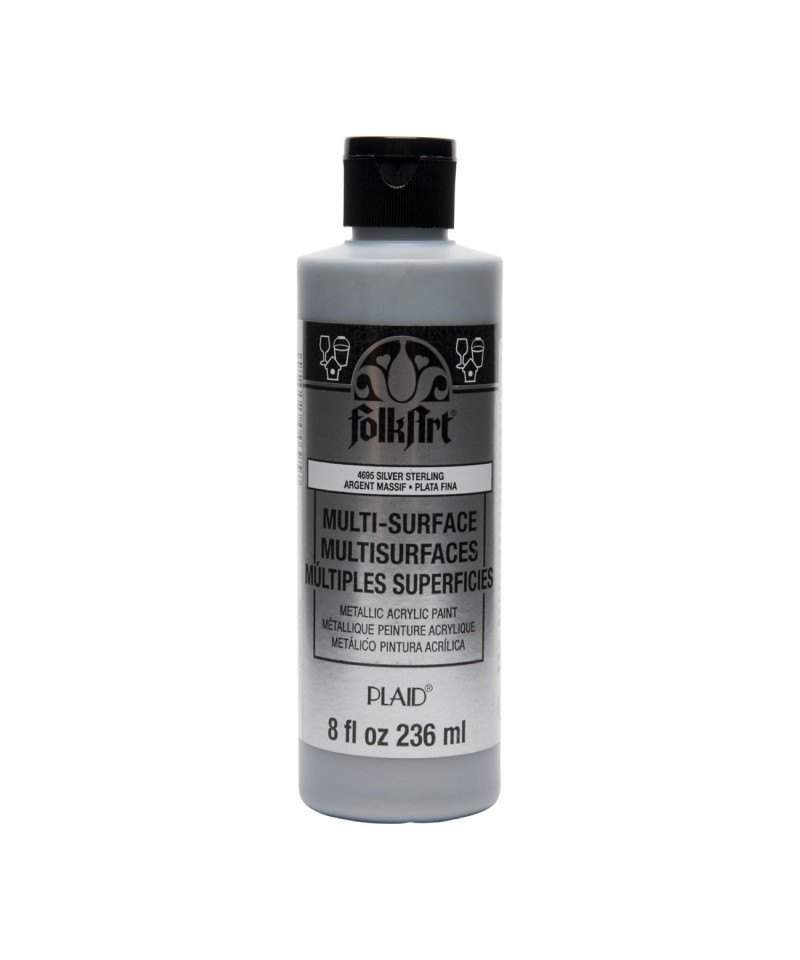 With FolkArt Multi-Surface Acrylic paint, you can paint wood, glass, ceramic, metal, terra cotta, rigid plastic, canvas, Styrofoam, slate, paper mache and fabric—all with the same bottle! The patented, self-sealing formula offers superior coverage for fewer coats and quicker drying times. With a dishwasher-safe metallic finish, this water-based non-toxic formula resists moisture as well as rust and comes in a wide color palette including basics and trend-right shades.