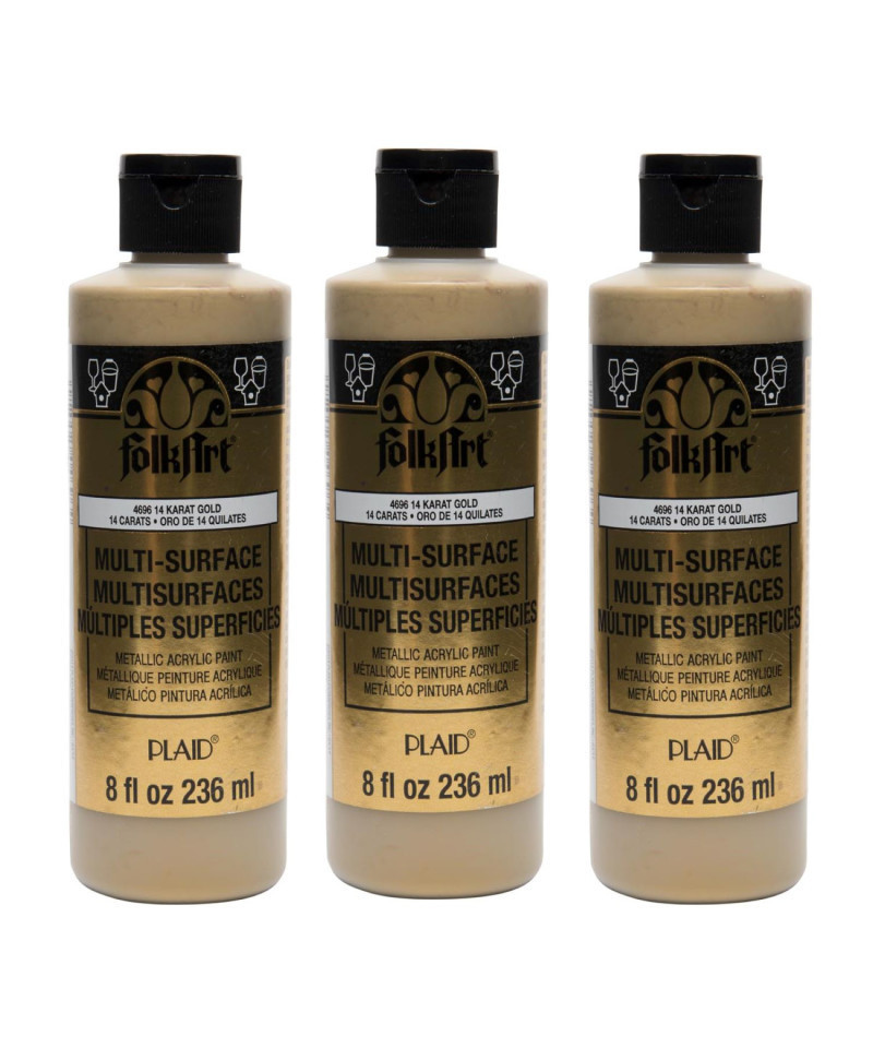 FolkArt Acrylic Paint Metallic, 8oz., 14k Gold, Pack of 3