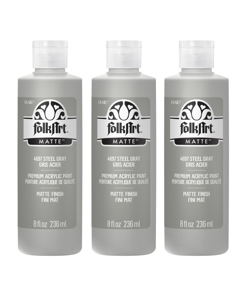 FolkArt Acrylic Paint Matte, 8oz., Steel Gray, Pack of 3