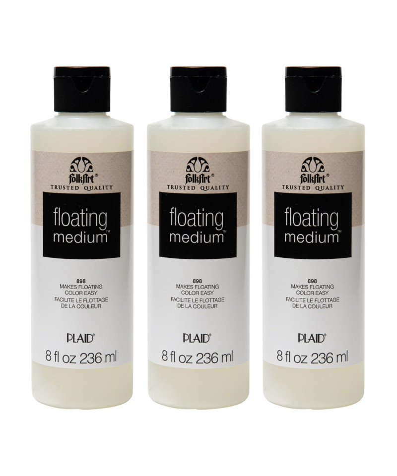 The FolkArt Floating Medium is specially formulated for floating colors with FolkArt Acrylic Paints. Create beautiful fluid paintings with the versatility of this handy medium. Watercolor painting is ideal for this medium. Easily glide your favorite FolkArt Acrylic Paint colors across your canvas to create unique shadows and highlights. FolkArt Floating Medium allows your colors to dry quickly without extenders and clean up is easy. Create beautiful pieces of artwork by floating an array of colors across your canvas with FolkArt Floating Medium in your craft supplies. Sold as a pack of 3 bottles.