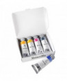 MaimeriBlu Professional Watercolors is a full range of 90 single-pigment watercolors. MaimeriBlu features an absolute purity of pigments that, together with Kordofan Gum Arabic, compose the totality of the mixture. Imperceptible, transparent, clean. No blending powders, and no additives. Nothing harmonizes or synchronizes the shift between the various shades. It is up to the artist’s skill to orchestrate and handle different characteristics, particularities and traits. The real value lies in the transparency of its colors and in the freshness of its washes. It is the whiteness of the paper that illuminates this type of painting. The light is behind the color. All colors have the maximum lightfastness. Each Introduction Set includes (5) 12ml tubes of paint in Cadmium Yellow Deep, Quinacridone Lake, Green Gold, Ultramarine Deep, and Payne's Grey. Contents may vary. Conforms to ASTM D-4236.