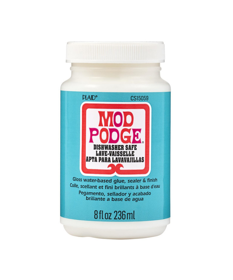 For over 55 years Mod Podge has been America's favorite glue, sealer, and finish. Mod Podge Dishwasher Safe is quick-drying and dries clear, leaving a smooth finish, perfect for projects that go in the dishwasher. Preserve the beauty of your kitchen decoupage projects and more with this multi-purpose, all-in-one sealant, glue, and finish. Use this unique decoupage glue to decoupage paper napkins to your coffee mugs, wine glasses, tumblers, and more. Your projects are easy to clean with this top-rack dishwasher-safe formula. Let your creativity come alive with the limitless possibilities of Mod Podge Dishwasher Safe. Includes one 8 oz. bottle.