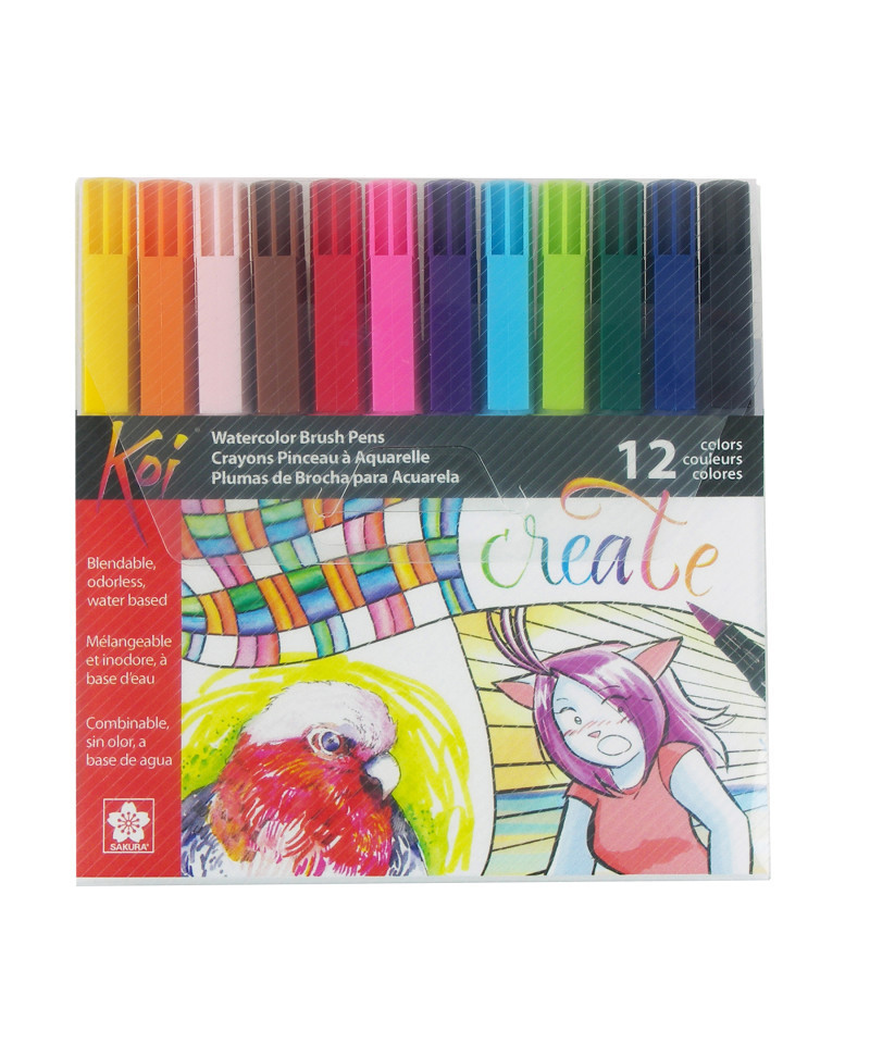 Sakura Koi Watercolor Brush Pens, Assorted Colors, 12-Piece Set