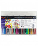 Bright, blendable colors in a brush. Lettering and coloring your artwork is simple with the no-mess Koi® Coloring Brush pens with a durable tip will quickly spring back to its original shape. These pens perform similar to a paint brush allowing fine, medium, or bold brush strokes just by changing the amount of pressure to the nib. The odorless, water-based solvent facilitates smooth blending and layering of colors. Koi Coloring Brushes are a convenient way to add vibrant color to any sketch, journal, cartoon, illustration, or rubber stamps. 48 transparent ink colors blend easily to create a multitude of hues and effects. Use the colorless blender pen or Koi Water Brushes to create seamless washes, layering and color gradations.