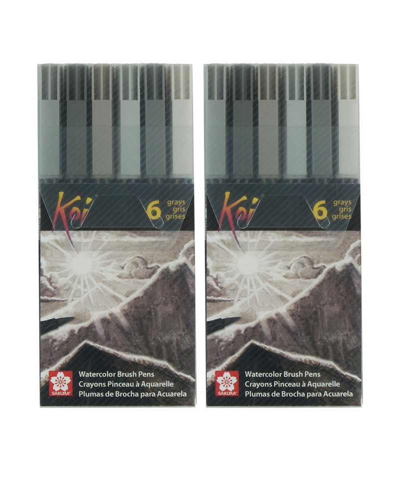 Bright, blendable colors in a brush. Lettering and coloring your artwork is simple with the no-mess Koi® Coloring Brush pens. The durable tip will quickly spring back to its original shape. These pens perform similar to a paint brush allowing fine, medium, or bold brush strokes just by changing the amount of pressure to the nib. The odorless, water-based solvent facilitates smooth blending and layering of colors. Koi Coloring Brushes are a convenient way to add vibrant color to any sketch, journal, cartoon, illustration, or rubber stamps. Use Koi Water Brushes to create seamless washes, layering and color gradations. Each set includes 6 pens. Sold as 2 sets for a total of 12 pens.