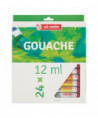 This gouache set offers a great basic palette of colors to create various paintings with. Because of their convenient size, these tubes are ideal to have in your studio or to take with you while you travel. Contents: 24 x 12 ml tubes (100 White – 205 Lemon Yellow (Primary) – 201 Light Yellow – 293 Medium Yellow – 202 Deep Yellow – 374 Pink Beige – 311 Vermilion – 334 Scarlet – 318 Carmine – 362 Deep Rose – 536 Violet – 504 Ultramarine – 512 Cobalt Blue (Ultramarine) – 508 Prussian Blue – 501 Light Blue (Cyan) – 526 Azure Blue – 617 Yellowish Green – 601 Light Green – 602 Deep Green – 623 Sap Green – 227 Yellow Ochre – 411 Burnt Sienna – 409 Burnt Umber – 700 Black). Talens Art Creation gouache is an opaque paint that you can thin, mix and blend with water. Gouache allows you to paint matt sections without leaving stripes or brush strokes. Because this paint dries within several minutes, it is highly practical and easy to use for large color blocks and fine details. Gouache is not waterproof when dry, so you can still rework the paint with a little water on your brush. The paint can be used on many grounds, such as paper, canvas, cardboard and wood. Gouache is known for its color intensity, which has made the paint popular among artists, designers and illustrators