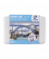 - This 12-half pan water color set is packed in a plastic pocket box, and also includes a round synthetic hair brush (size 6) and a mixing tray.