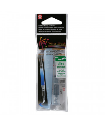 - This 12-half pan water color set is packed in a plastic pocket box which also includes a round synthetic hair brush (size 6) and a mixing tray.