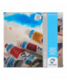 Van Gogh water colors are rated as a student and artist level paint range. They feature brilliant, transparent, and intense colors with high tinting strength. Most colors are rated with the highest degree of lightfastness +++ (100+ years under museum conditions) with a few colors rated just one step below at ++ (25-100 years under museum conditions). Thanks to the purity and uniform viscosity, these water colors are easy to work with and easy to mix. Proudly produced in Holland with stringent quality control for a consistent experience with every purchase. This 20x10ml tube general selection water color set has the following colors: Chinese White 108, Permanent Lemon Yellow 254, Azo Yellow Medium 269, Permanent Red Light 370, Madder Lake Deep 331, Ultramarine Deep 506, Cerulean Blue Phthalo 535, Viridian 616, Burnt Sienna 411, Payne's Grey 708, Indian Yellow 244, Permanent Orange 266, Rose 357, Quinacridone Purple Blue 593, Prussian Blue 508, Sap Green 623, Olive Green 620, Yellow Ochre 227, Burnt Umber 409, Vandyke Brown 403.
