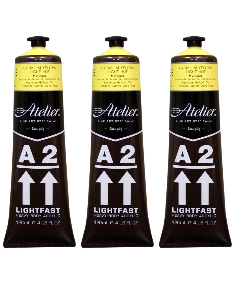Atelier A2 Heavy Body Lightfast Artist Acrylic, 4 oz., Cadmium Yellow Light Hue, Pack of 3