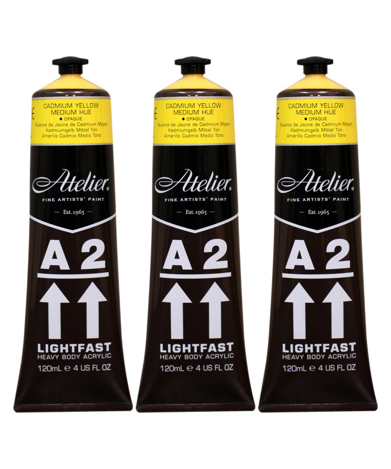Atelier A2 Heavy Body Lightfast Artist Acrylic, 4 oz., Cadmium Yellow Medium Hue, Pack of 3