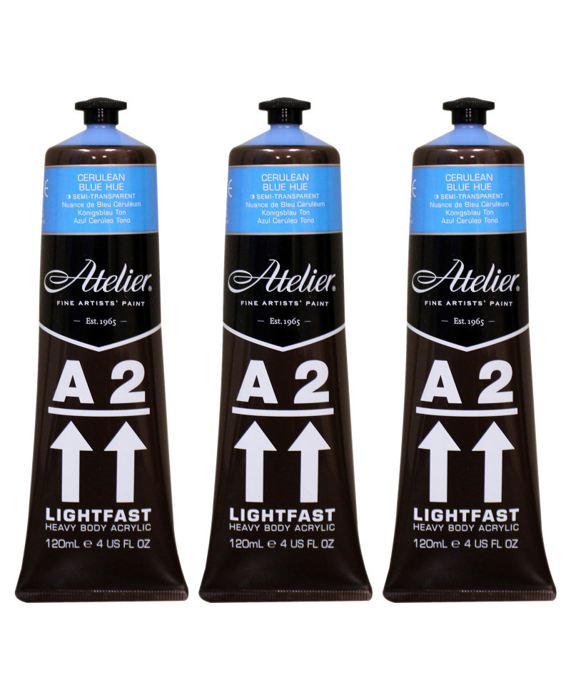 Atelier A2 Heavy Body Lightfast Artist Acrylic, 4 oz., Cerulean Blue Hue, Pack of 3