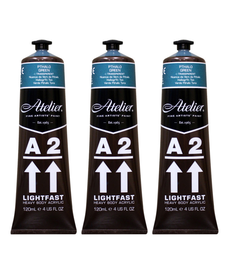 Atelier A2 Heavy Body Lightfast Artist Acrylic, 4 oz., Pthalo Green Hue, Pack of 3
