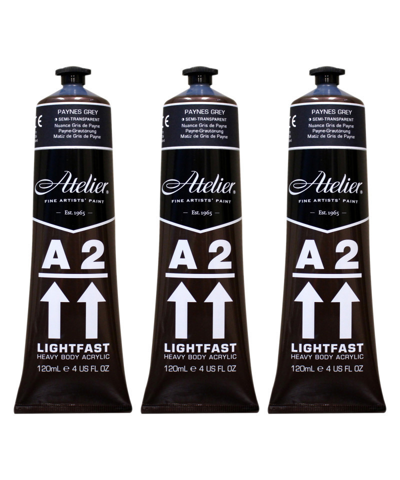 Atelier A2 Heavy Body Lightfast Artist Acrylic, 4 oz., Paynes Grey Hue, Pack of 3
