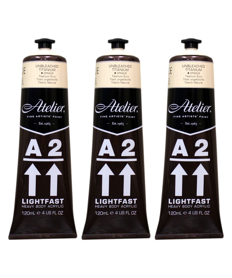 Atelier A2 Heavy Body Lightfast Artist Acrylic, 4 oz., Unbleached Titanium, Pack of 3