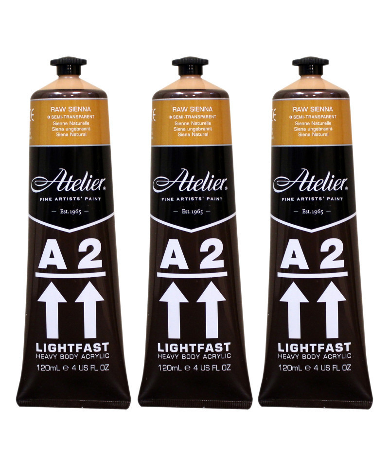 Atelier A2 Heavy Body Lightfast Artist Acrylic, 4 oz., Raw Sienna, Pack of 3